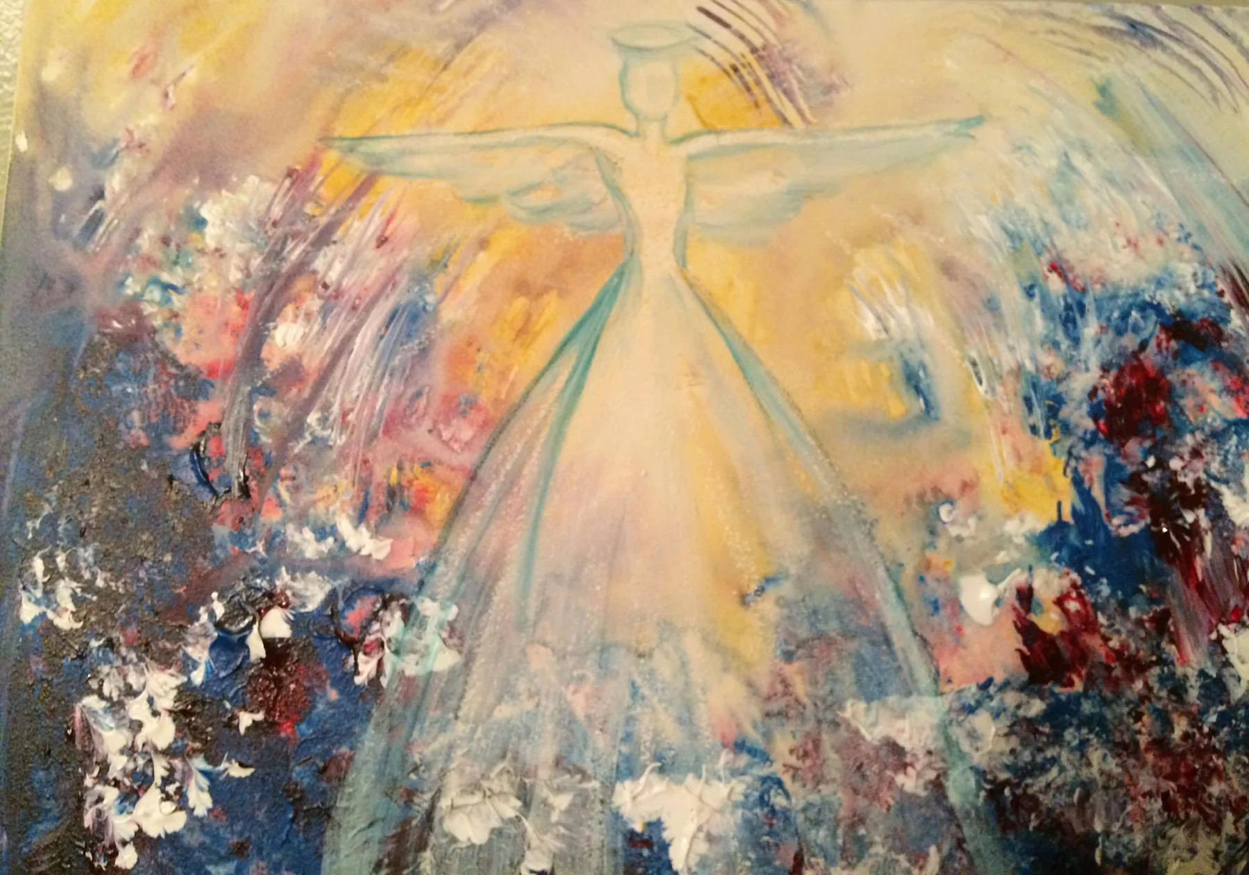 Hi dear my art arrived several weeks ago and I should have written sooner :) It is stunning I love it. Thank you again, it's on my dresser and from my vantage point the angels move all over the surface changing direction and shape. It is very comforting. Hugs and love to you today, till we meet again.